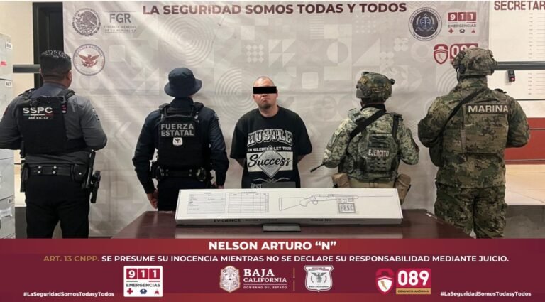 Elementos de la Fuerza Estatal detuvieron a Nelson Arturo “N” en la colonia Alemán; se le vincula con la colocación de coronas fúnebres y mensajes contra la Policía Municipal. Agentes de la Fuerza Estatal de Seguridad Ciudadana (FESC) lograron la captura de un objetivo prioritario, presuntamente vinculado a una célula delictiva que opera en la ciudad de Tijuana. El sospechoso, identificado como Nelson Arturo “N”, fue interceptado sobre la Vía Internacional, en la colonia Alemán,